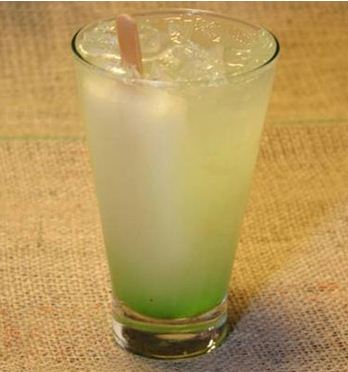 Num copo longo, adicione a vodca, suco de abacaxi, picolé de limão e gelo picado. Complete com o xarope de maçã verde.